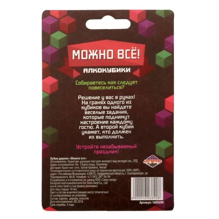 Купить кубик "можно все", алкокубики для принятия решений от 60 руб. с доставкой до пункта выдачи в Выксе. Интернет магазин ДекаМаркет. Оплата при получении.